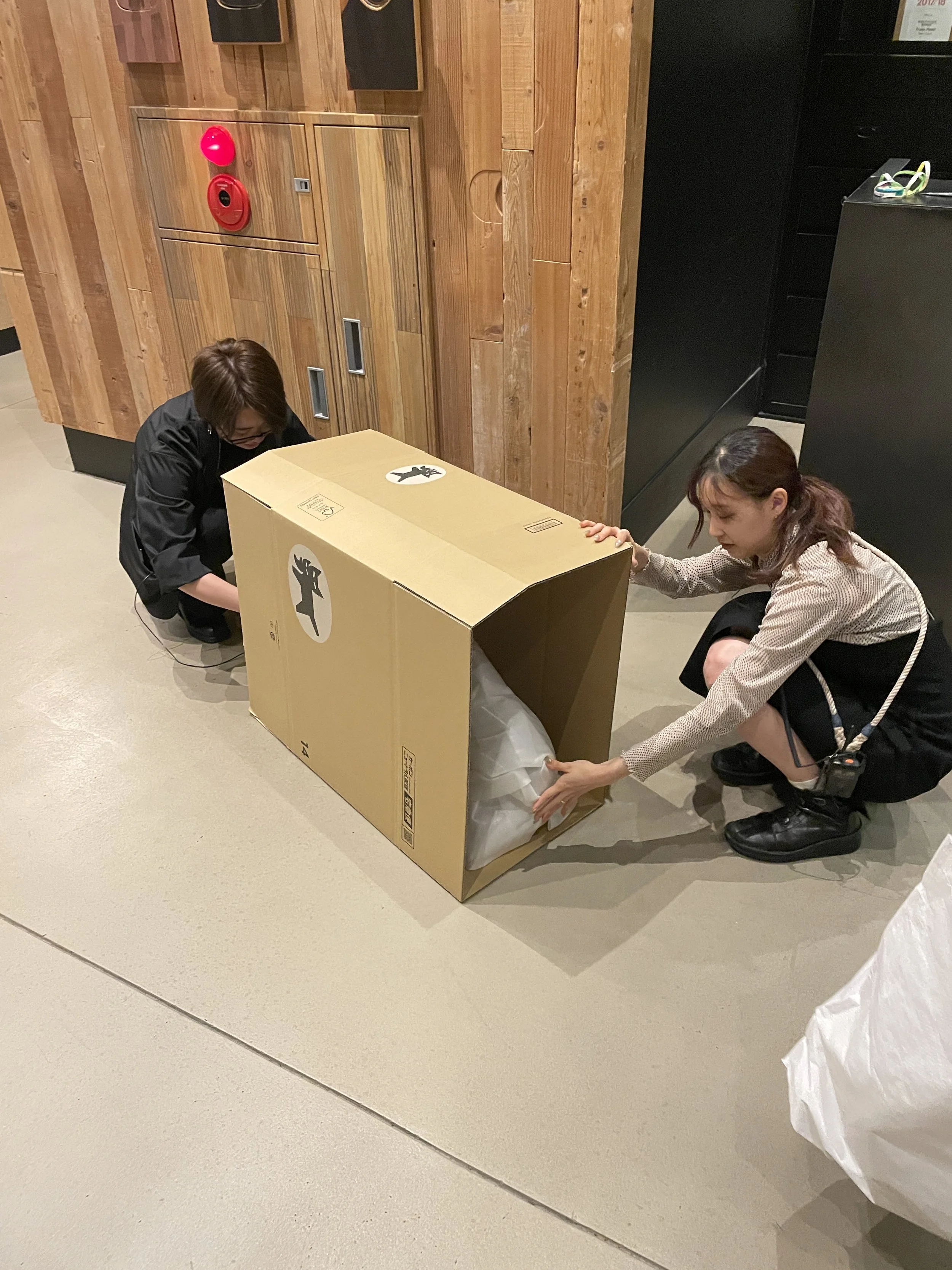 I looked on as the two women consulted each other in rapid Japanese, working as a team to crease a corrugated cardboard into a beautiful oblong package, big enough to accommodate the awkwardly shaped item. Sure enough, emblazoned on the box was the kuro neko.
